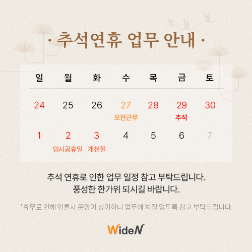 [¿ÍÀÌµå¾Ø] 2023³â Ãß¼® ¿¬ÈÞ ¾÷¹« ¾È³»