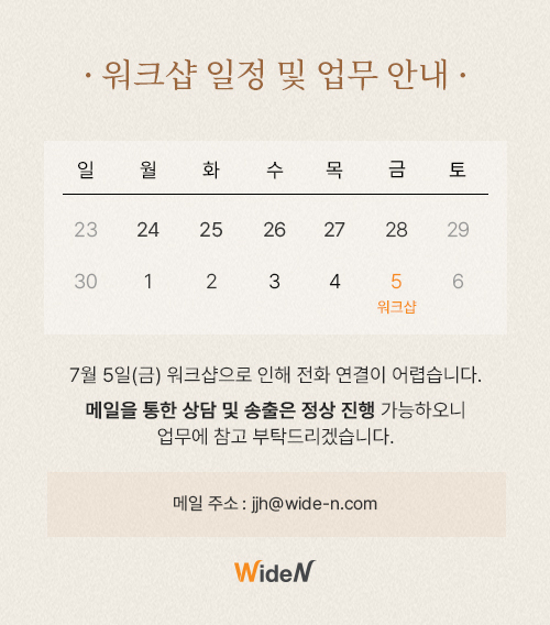| ÀÛ¼ºÀÚ : ¿ÍÀÌµå¾Ø(jjh@wide-n.com) ÀÛ¼ºÀÏ : 2024-06-28 Á¶È¸¼ö : 318 | |||