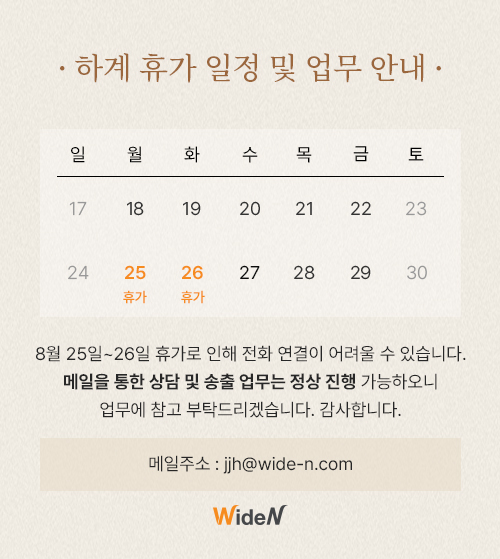 Çϰè ÈÞ°¡ ¾÷¹« ¾È³» (8¿ù 25ÀÏ~26ÀÏ)